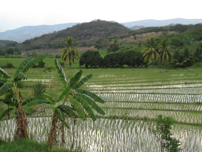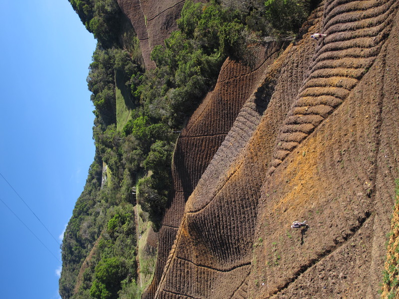 Am folgenden Morgen erwartet uns im sanften Licht des anbrechenden Morgens eine sagenhafte Abfahrt ins heiße Tal, um einen Flusslauf zu queren. Wir befinden uns wieder auf Höhe des Bananen- und Zuckerrohranbaus und schwitzen. Alles ist trocken und staubig. Hier wirken die Dörfer ärmlicher und heruntergekommener.