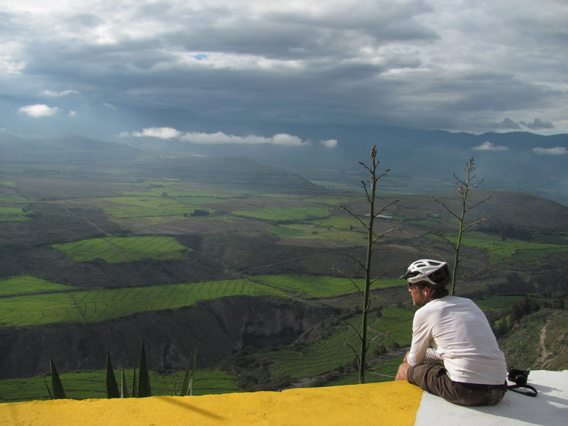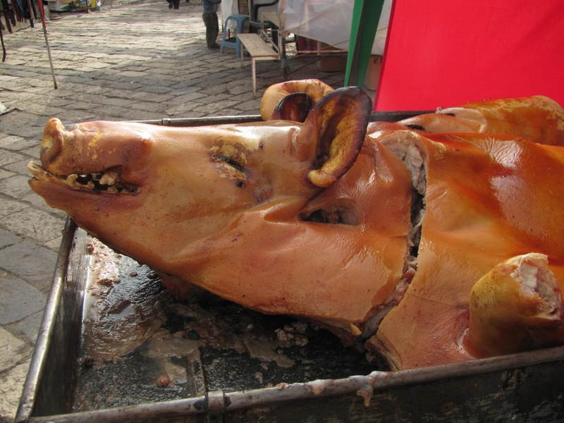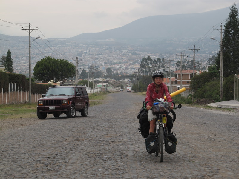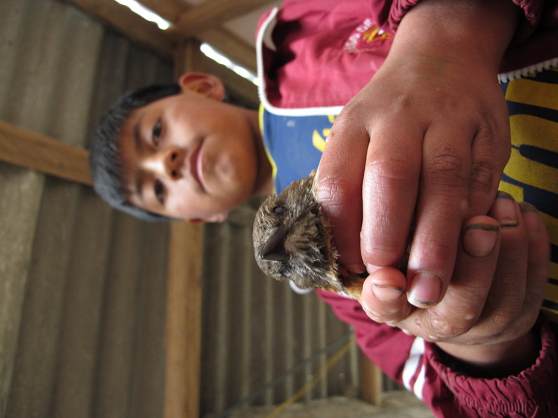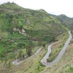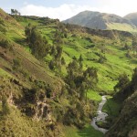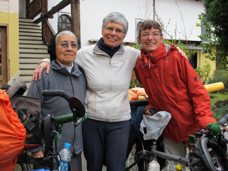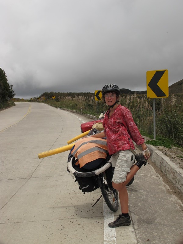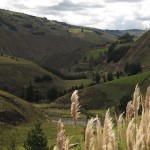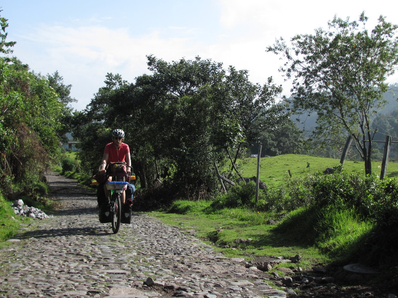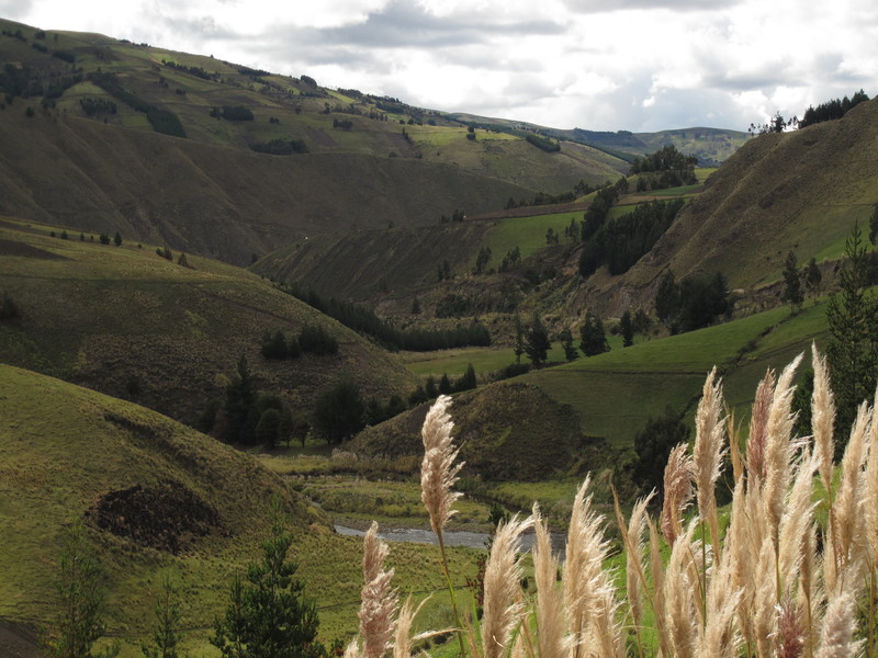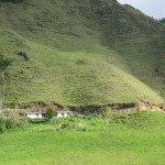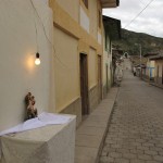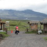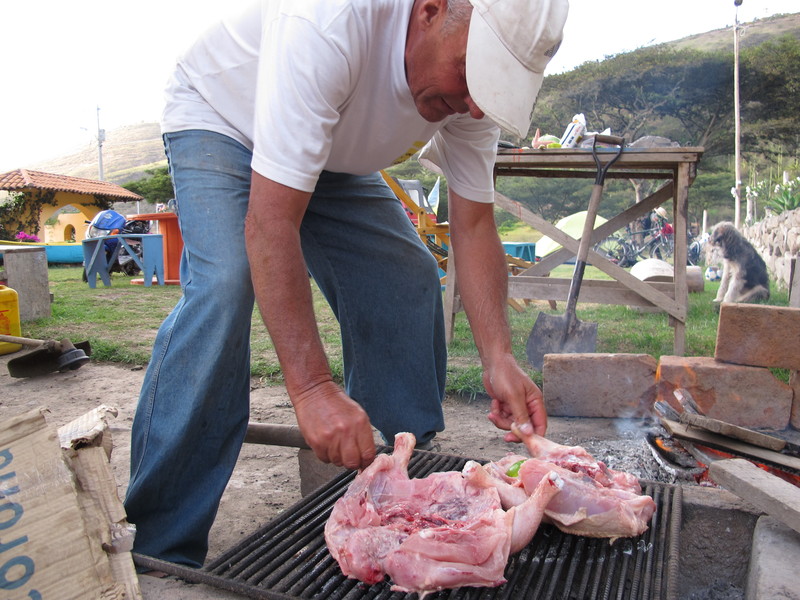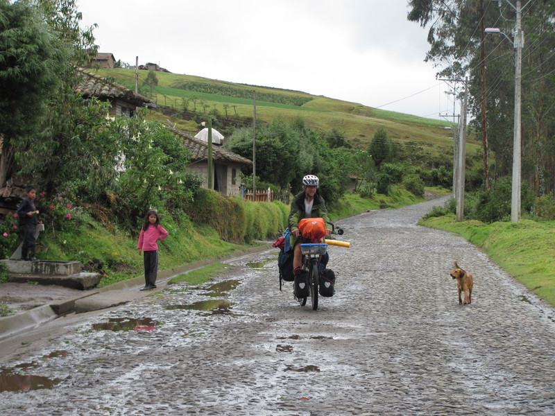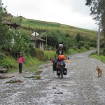 Nach einer deftigen Steigung mit Schiebeeinlagen auf loser Erde, erreichen wir den ruhigen Ort Santo Domingo. Ich frage zwei Kinder, ob ich bei ihnen Wasser auffüllen kann und lerne dabei den Vater kennen, der cuys essend in der angrenzenden Küchenhütte sitzt, auf dem Boden umringt von einer zahlreichen Schar quiekender, noch lebender Meerschweinchen.