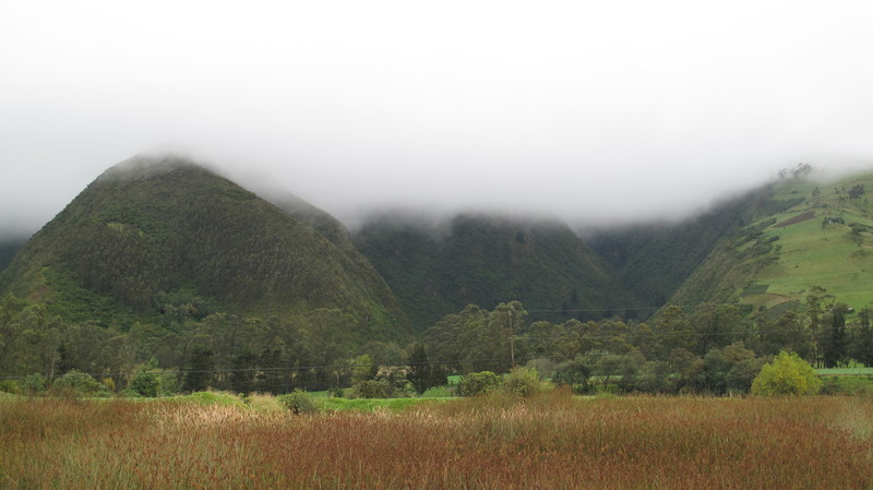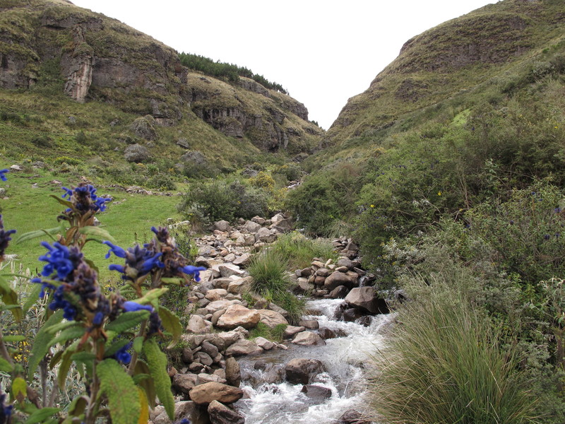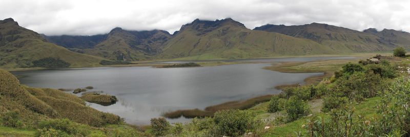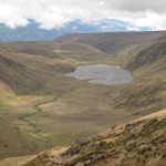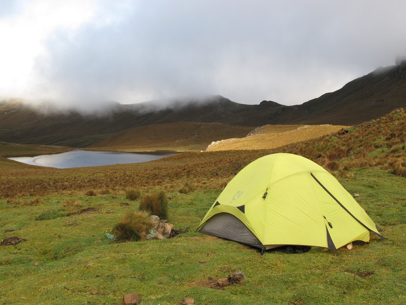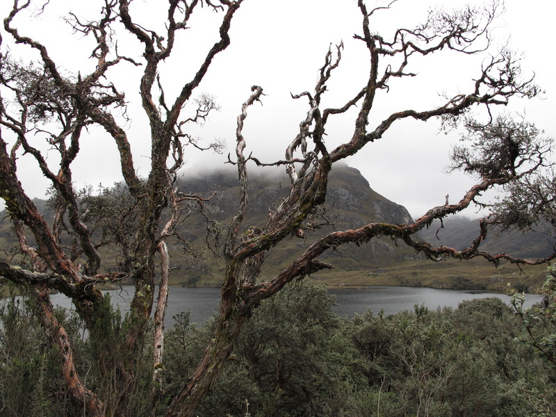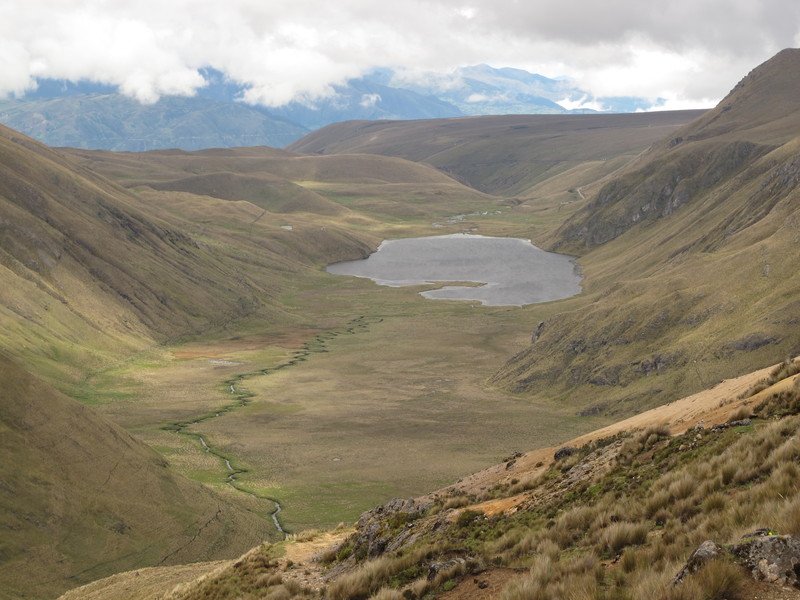 Am Morgen erreichen wir die Laguna Sausacocha und legen ein zweites Frühstück ein. Am Ufer des Sees gibt es sogar Bänke. Am Wochenende scheint das hier wohl ein Ausflugsziel zu sein, es werden bestimmt Forellen am Laufenden Band verkauft. Nun ist nichts los. Es nieselt leicht, ist jedoch mild.