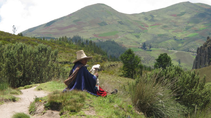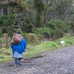 Am Straßenrand läuft eine alte Frau, in indigene bunte Trachten gehüllt. Es ist lustig, denn sie trägt auf dem Rücken einen knatsch orangen Rucksack. Das allein ist schon ein seltener Anblick, denn normalerweise transportieren die Frauen hier alles in einem Bündel. Aber nein, diese señora trägt einen Rucksack und bei genauerem Hinsehen erkennen wir, dass sie ihn falsch herum aufhat. Der Reißverschluss schaut nach unten.