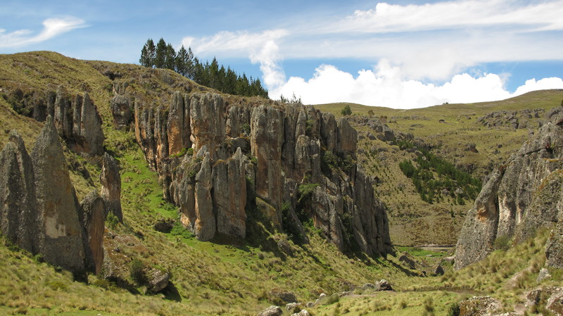 Endlich haben wir den hektischen Verkehr der vielen Mototaxis, Motorräder und Lastwagen hinter uns gelassen uns befinden uns auf ruhiger Straße, die uns durch wunderschönes, grünes, hügeliges Bergland mit viel Landwirtschaft nach Cajabamba bringen wird.