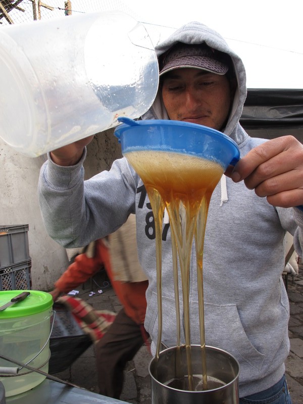 Anbei versuchen wir per Besuch der verschiedensten (wenigen) Läden unsere Vorräte wieder aufzustocken. „No hay pan! (Es gibt kein Brot!)“, hören wir immer wieder. Wir schlendern gerade durch eine Gasse, fotografieren die Lehmhäuser im schönen Licht, da kann Hardy an zwei lustige Frauen doch endlich eine Frage stellen, die ihm schon lange auf der Seele brennt. „Was bedeuten denn die kleinen weißen Fahnen, die an den Hauseingängen hängen?“- „Hay pan!“, erfahren wir. Hier also können wir das begehrte Brot erstehen! Es ist von gestern, aber immerhin.