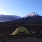 Wir radeln weiter und weiter und realisieren, dass wir heute wohl weder die in der Karte angegebenen Orte Estación Quiroz (welcher sich nur als Kreuzung darstellt) noch den Ort Estación Chuquicara erreichen werden. Bei den Hütten wollen wir lieber nicht schlafen. Und so kommt uns mal wieder das Glück zur Hilfe, denn nach 30km nach Pallasca schlängelt sich eine Piste den Hang hinauf auf der sich auch noch in der Dunkelheit fette Lastwagen hinauf wuchten. Auf der finden wir wieder einen Abzweig und dann einen versteckten Platz hinter großen Felsbrocken. Das wird unser erster wilder Zeltplatz in Peru! Die Sonne schaut kurz bevor sie verschwindet noch einmal goldgelb hervor, wir befinden uns in Marslandschaft. Es ist unbeschreiblich schön!
