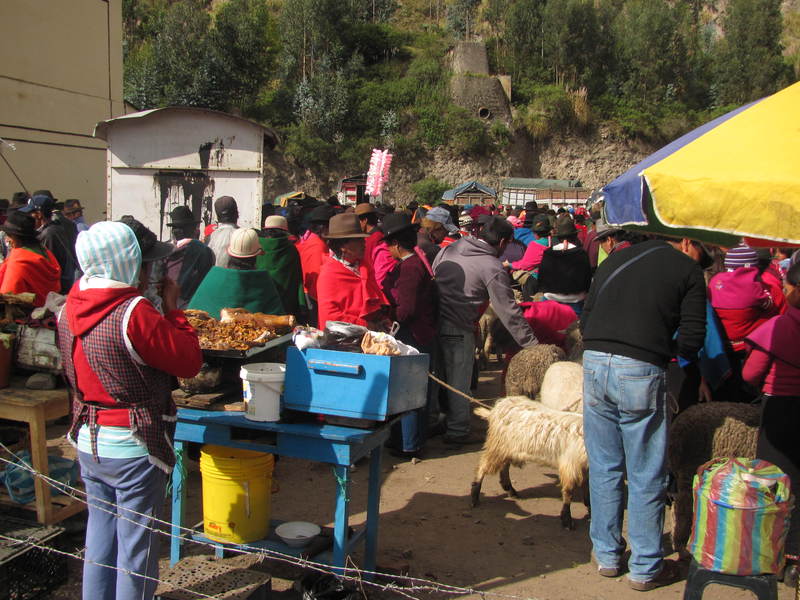Im nicht weit entfernten netten Ort Huamachuco mit seiner schnuckeligen plaza, die Heckenschnitte in lustigen Tierformen schmücken. Es gibt ein Känguru und ein Alpaka mit Reiter. Als Hardy auf dem Markt einkauft und ich die Räder im Auge habe, kommt von sich aus ein altes Muttchen mit Strohhut und Röckchen zu mir und setzt sich neben mich. Zusammen studieren wir die Perukarte und sprechen über die hier hergestellten Hüte. Ich erfahre, dass diese nicht wie angenommen ewig halten und nach maximal vier Jahren ausgetauscht werden müssen. Ich bin erstaunt, da diese doch recht stolze Preise haben.