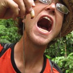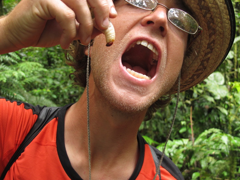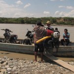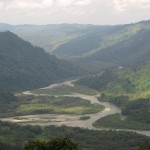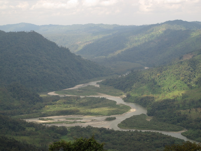 Unten am Fluss angekommen passieren wir ein ärmlich aussehendes Camp von Goldsuchern, die hier mit Sieben im Schlamm des Flusses ihr Glück suchen. Immer wieder sehen wir Hütten aus Plastikplanen oder Ästen auf der anderen Seite des Flusses, in denen tatsächlich Leute leben. Per wackeligen Seilbahnen queren sie ihn wohl.