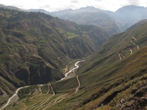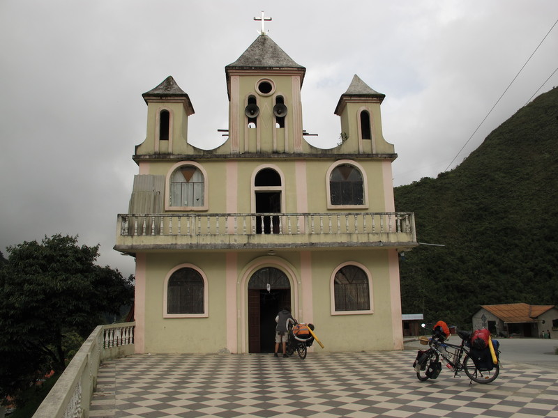 Wir fahren extra kurz nach sechs Uhr am Morgen los, um die lange Steigung noch in der Kühle abarbeiten zu können. Für die 10km hinunter bis zur Brücke über den Fluss auf 2130m benötigen wir über eine Stunde. Danach folgen 20 weitere bergauf bis nach Pallasca. Aber was ist denn das? Das konnten wir ja von Mollepata aus gar nicht erkennen. Bis auf in den steilen Kurven ist die Strecke asphaltiert! So stellt sie sich als gar nicht so schlimm wie erwartet heraus und wir rollen von einer Kehre in die folgende, begleitet von Hardys lautem Mitzählen.