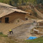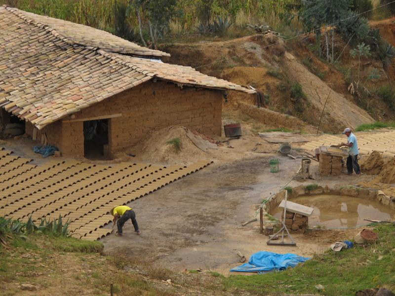 In dieser Gegend wird sehr viel Eukalyptus angepflanzt. Ganze Plantagen gibt es. Wir brauchen ein Wenig, kommen aber darauf, wofür es verwendet wird. Der schnell nachwachsende Rohstoff wird für den Brand der hier überall hergestellten Lehmziegel verwendet. Neben den Häusern sehen wir Becken im Boden, die wir zuerst als Hahnenkampfarenas deklarieren. In ihnen wird jedoch die Erde mit Wasser gemischt. Ein Junge steht mit Gummistiefeln im Matsch und mischt ihn schwerfällig indem er darin herumtrampelt. Die fertig geformten Ziegel trocknen in der Sonne und werden anschließend in großen Öfen gebrannt.