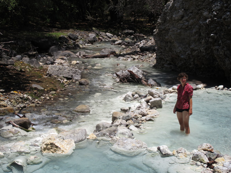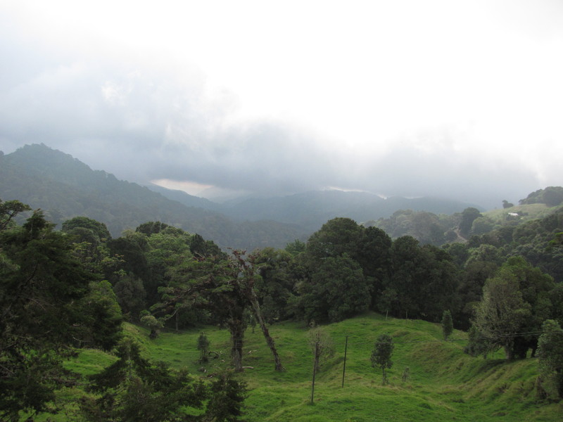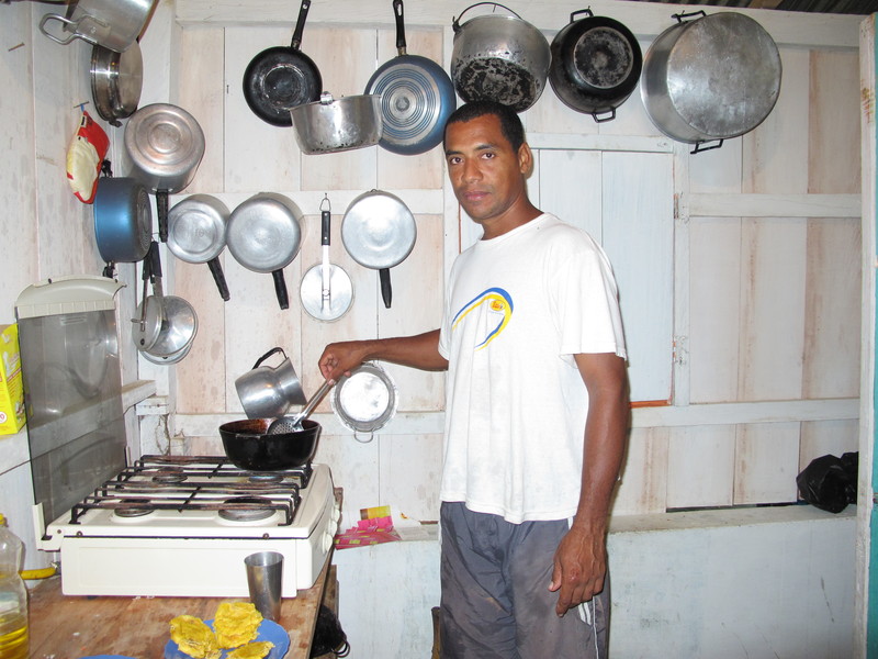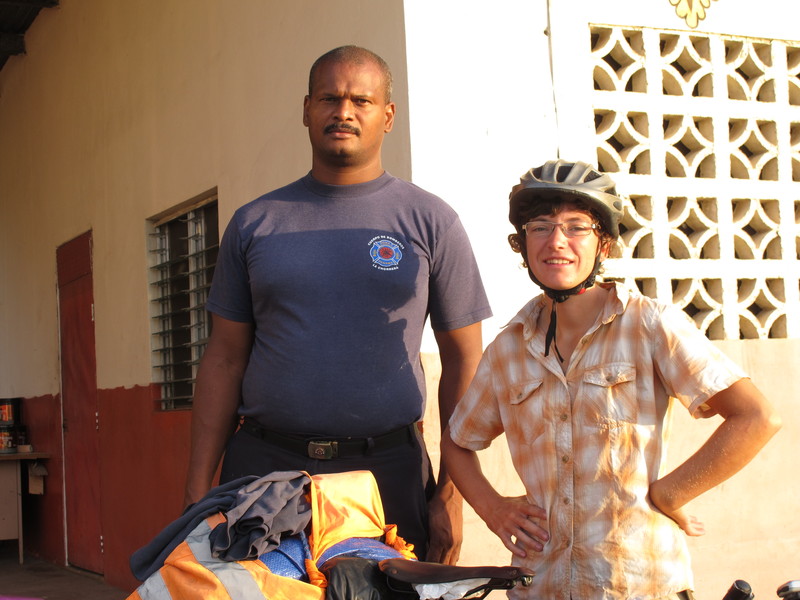In Doradal schickt uns bei der Schlafplatzsuche der Pfarrer zur Polizeiwache und die auf eine Ranch hinter dem Ort. Dort haben wir Glück und dürfen bleiben. Das Zelt wird auf der Wiese eines Vorgartens von vermieteten Apartments aufgeschlagen. Bis spät in die Nacht sitzen wir zusammen mit dem Verwalter, seiner Freundin und zwei Mietern vor unserem Zelt und werden bei unseren Kochausübungen bestaunt. Da unser vegetarisches Abendessen dem dicklichen Verwalter zu schlaff erscheint, bekommen wir noch vier Eier geschenkt. In einem Apartment bietet er uns auch an zu duschen. Yuppie!