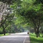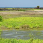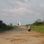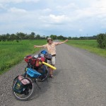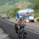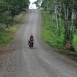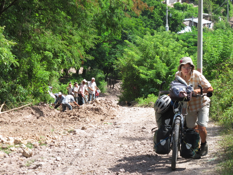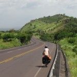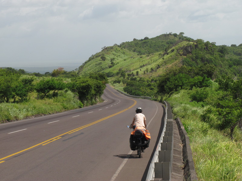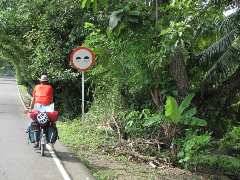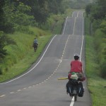 Die Straße, die sich mal mehr, mal weniger entfernt am Fluss entlang windet, ist wirklich fast eben. Sie wird vierspurig ausgebaut und ist an den bereits fertigen Stellen ein Vergnügen. Die alten Abschnitte sind dagegen sehr eng. Wir haben Glück, denn heute ist ein bewölkter Tag mit einer leichten Brise. Ansonsten ist es hier in der Tiefebene auf nur 200 Metern über dem Meeresspielgel, welche zu beiden Seiten von Bergzügen umgeben wird unerträglich heiß. So kommen wir gut voran und schrubben Kilometer.