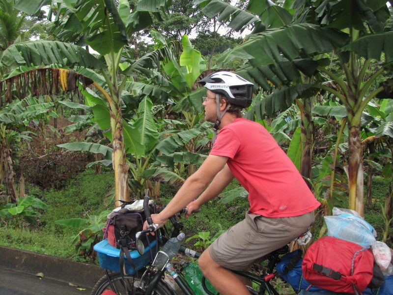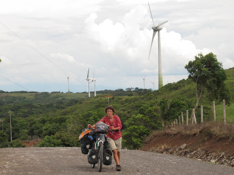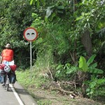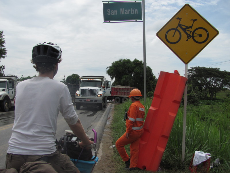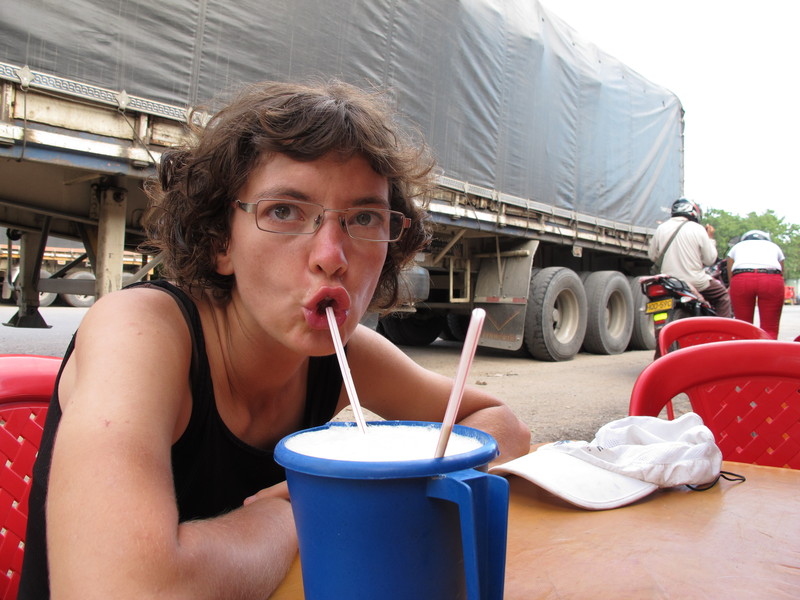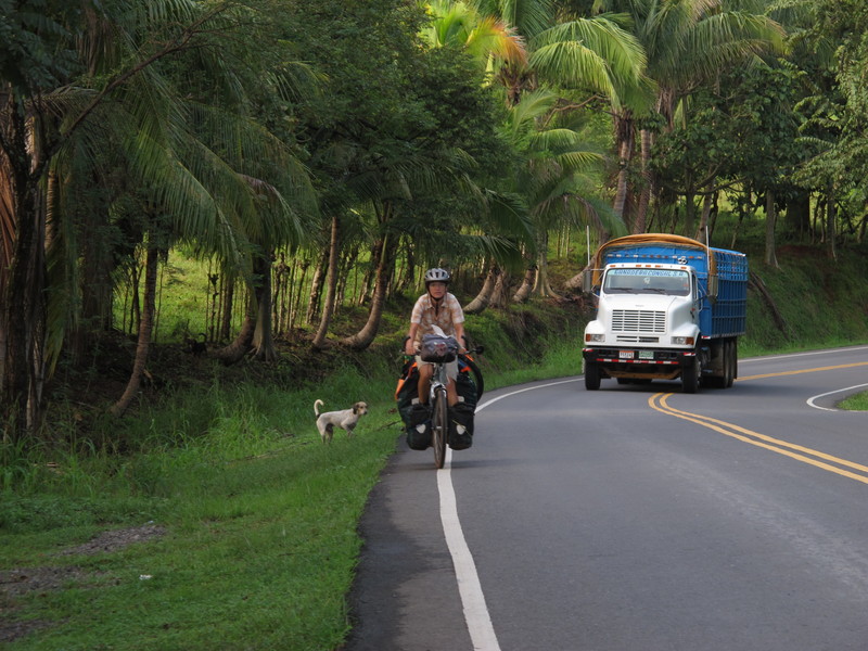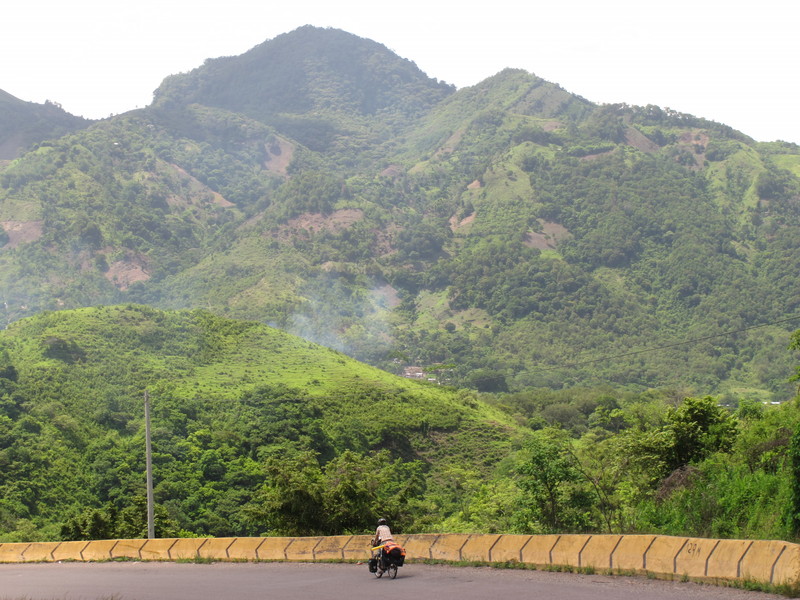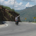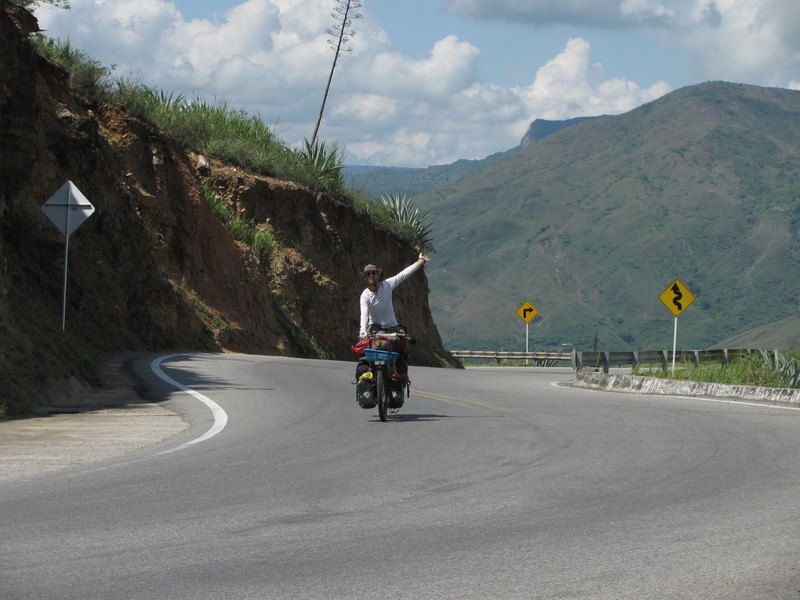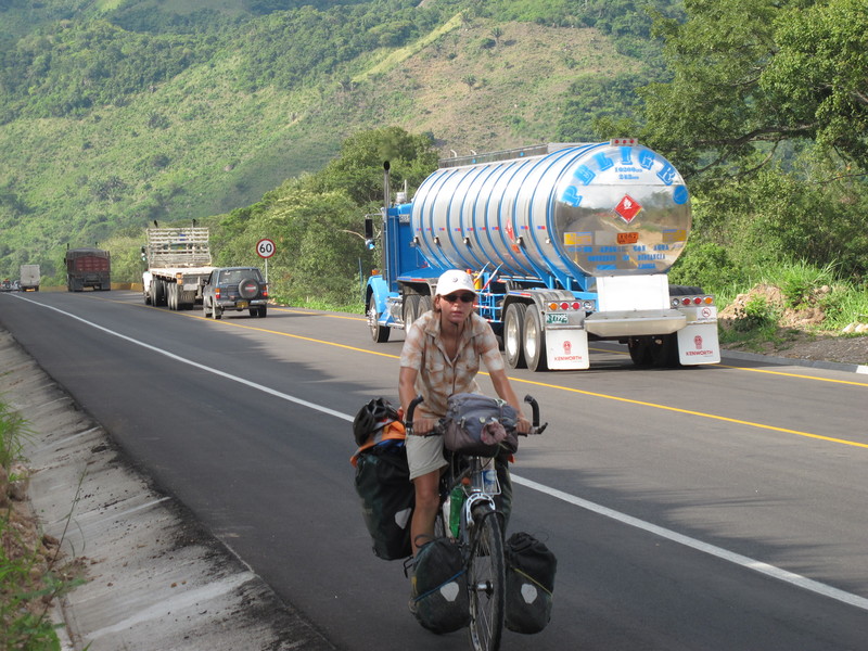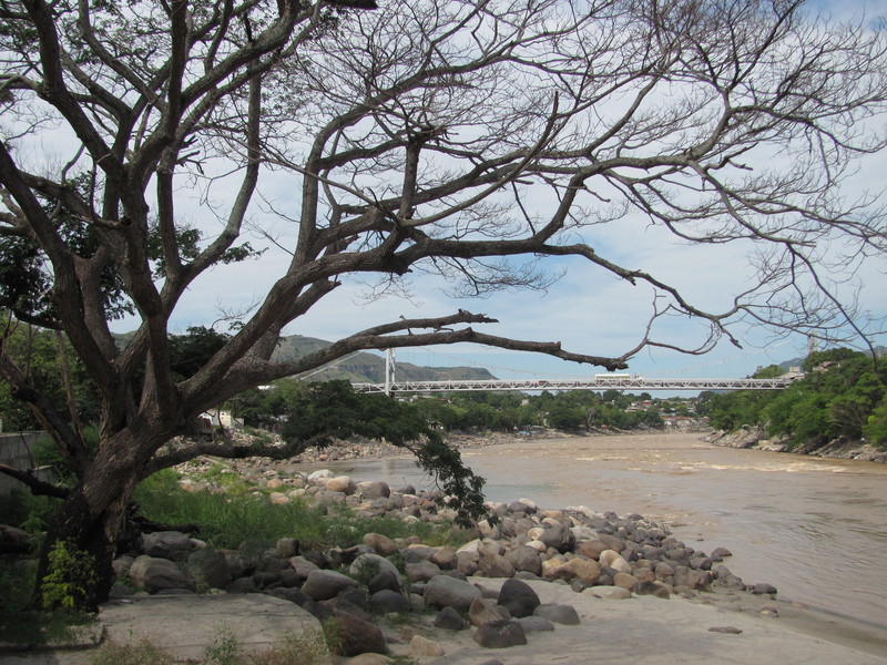 Gleich nach Villeta erwartet uns am Morgen eine 18km lange, ätzende Steigung. Serpentine um Serpentine winden wir uns zusammen mit etlichen LKWs den Berg hinauf. Und dann geht es wirklich nur noch hinab. Bis auf etwa 200 Meter über dem Meeresniveau sausen wir hinunter. Tolle Aussichten auf dem sich im Tal entlang schlängelnden Río Magdalena tun sich auf. Wir radeln an einem der beiden größten Flüsse Kolumbiens entlang.