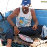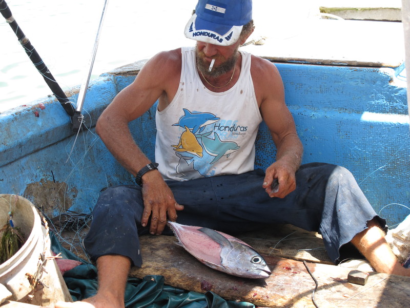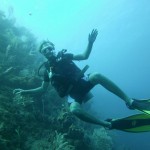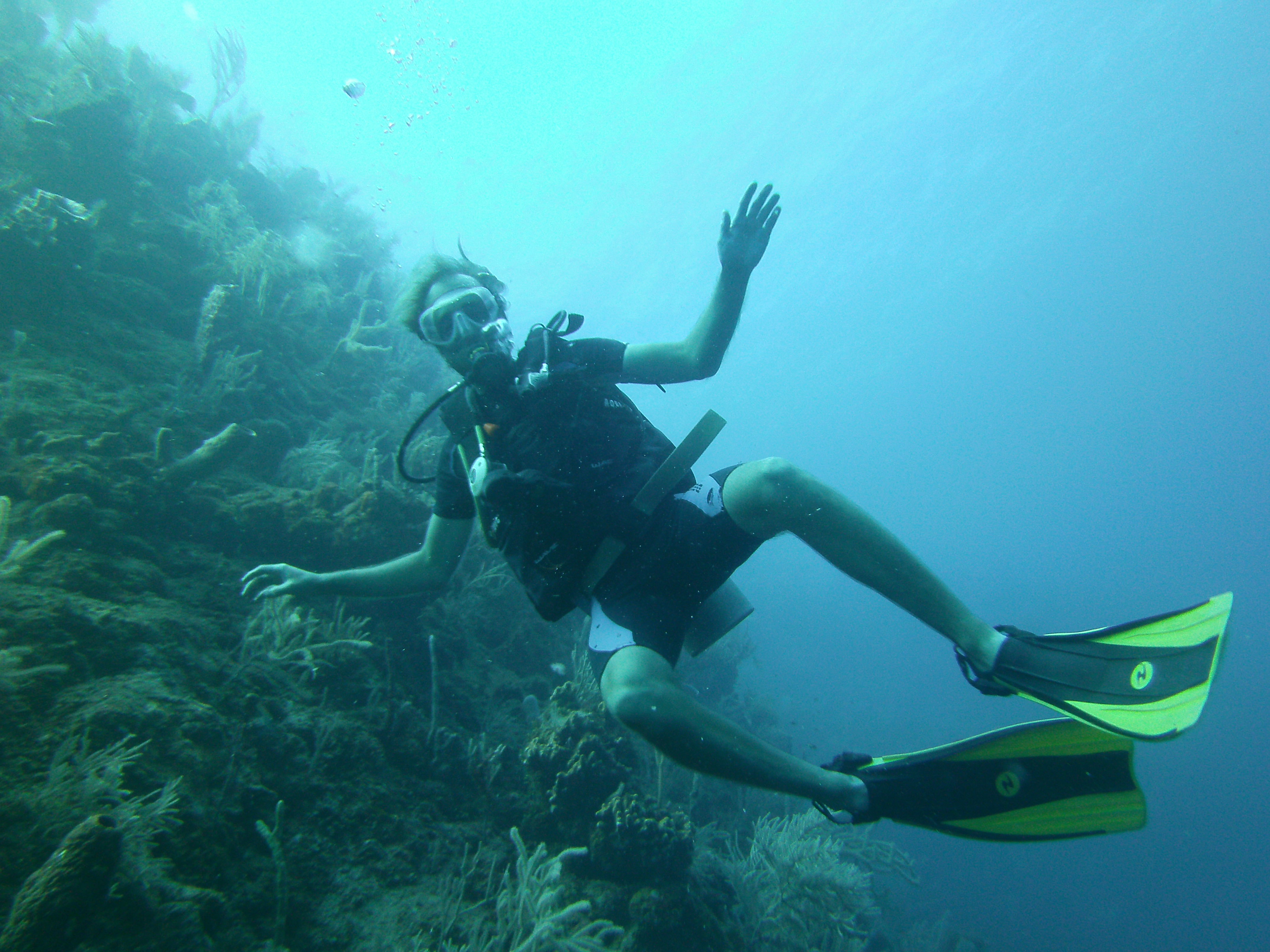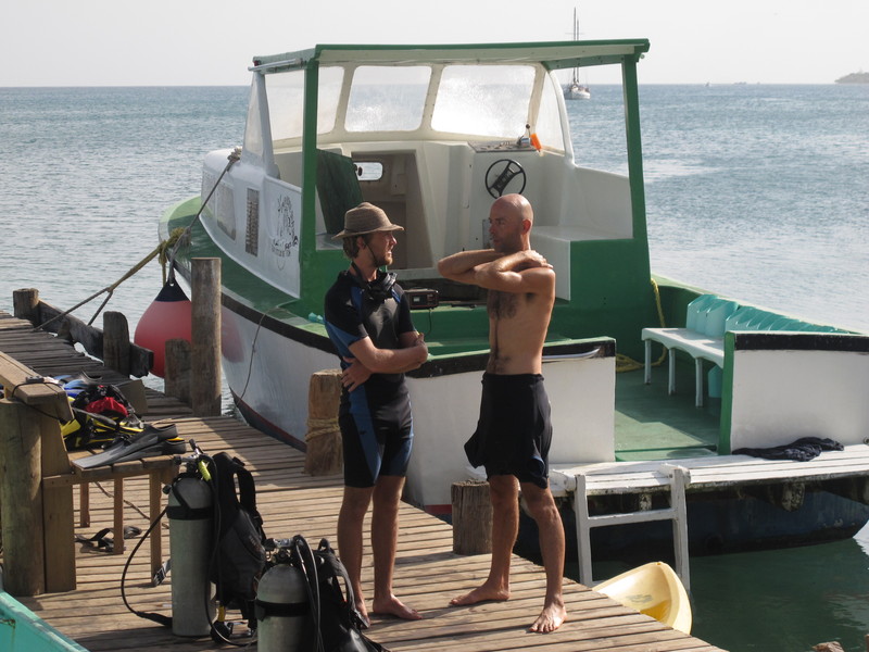 Einen Tag verbringen wir auf dem wunderschönen unbewohnten Water Cay. Palmen säumen die kleine, unbewohnte Insel. Um sie herum gibt es tolle Korallen, die eifrig beim Schnorcheln betrachtet werden. Als große Gruppe genießen wir das sanfte, türkisfarbene Meer und spazieren einmal komplett um die Insel. Der alte, etwas verrückte, aber sehr liebenswürdige Fischer Zorro bringt uns hin und holt uns am Nachmittag wieder ab. Auf der Rückfahrt sind die Wellen recht hoch. Sein kleiner Kahn springt hoch und runter. Die Wellen schwappen über die Boardwand in unsere Gesichter. Gut das wir unser Schnorchelequipment bei uns haben. Mit Taucherbrillen bewaffnet sitzen wir bald im wackelnden Kahn.