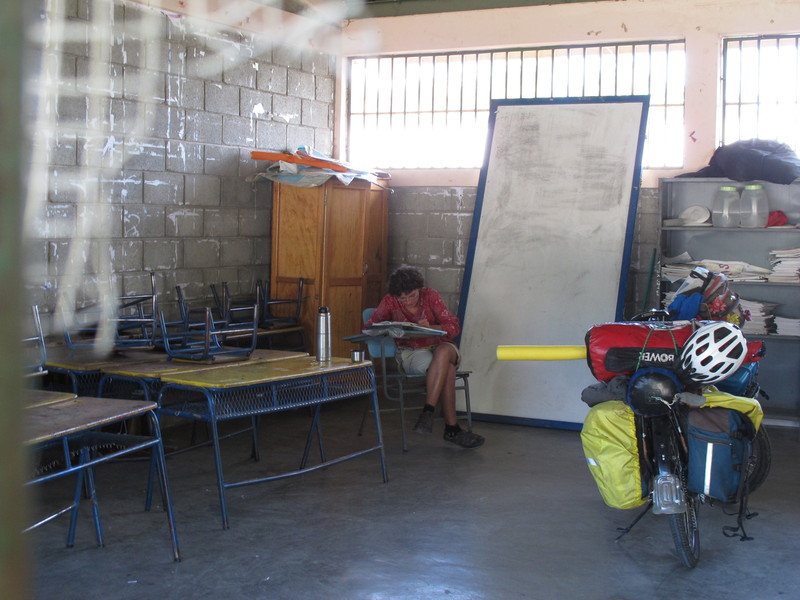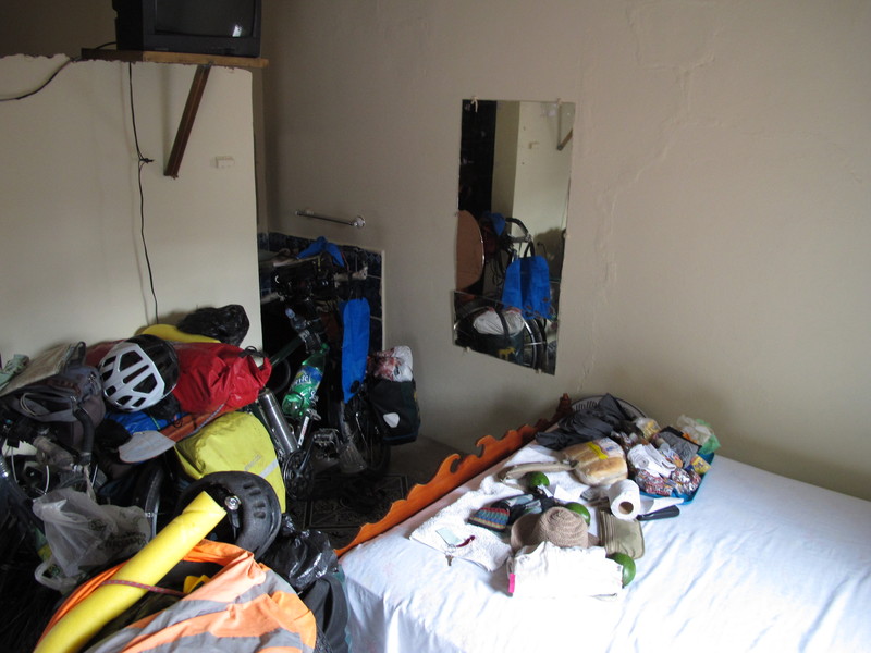 Zur Zeit sind zwei weitere Gäste zu Besuch. Adrian und Matt stiegen einst vom Fahrrad aufs Motorrad um. Mit den Beiden teilen wir uns die casa de ciclistas. Das ist in diesem Fall ein unaufgeräumter Schuppen mit Hängeboden. Fahrräder stehen und hängen herum. Ein richtiges Chaos. Man darf sich jedoch von den eher nicht sehr privaten, vollgestaubten Schlafangelegenheiten abschrecken lassen, denn der Rest ist Oberspitze. Wir dürfen das Haus der Familie mitbenutzen, hängen zusammen ‚rum und essen gemeinsam. Irgendwann, wenn er einmal Zeit hat, will Manuel die casa de ciclistas ausbauen, dann wird es wohl der Mercedes unter den casas. Wir drücken ihm, bzw. allen folgenden Radlern die Daumen.