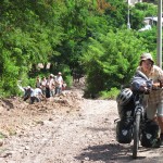 Ab Río Claro beginnt die saftige Steigung nach Medellín, die uns eineinhalb Tage schwitzen lässt. Am Straßenrad werden Bohnen in der Sonne auf Plastikplanen getrocknet. Schläuche, aus denen unablässig Wasser fließt preisen Autowäschereien an. Große LKWs parken auf Schotterflächen und werden fleißig von Männern gewaschen. Wenn keine Kunde da ist, planschen Kinder im Wasser, das aus den Schläuchen spritzt.