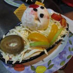 Zusammen schmieden wir wilde Pläne für unser großes Silvesterdinner. Fondue soll es werden, kombiniert mit vielen Salaten, zum Nachtisch gibt es Kaiserschmarn. Wir gehen einkaufen und verbringen den ganzen Tag in der Küche. Es hat sich gelohnt. Als Martha und Manuel abends heimkehren, ist der Tisch brechend voll. Mit unserem Kocher wird das Öl für das Fondue heiß gemacht. Klappt prima. Wir schlagen uns die Bäuche voll.