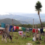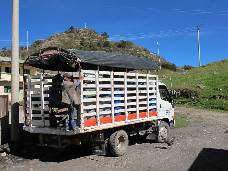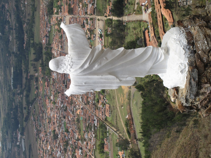 Um zwanzig nach elf quetschen wir uns zu acht in den kleinen Jeep Marthas. Manuel setzt sich ans Steuer uns fährt schwungvoll die Berge hinauf, erst auf Schotter, dann auf Pfaden, dann auf Grasland. Wir wollen noch vor zwölf Uhr ein großes Kreuz erreichen, das auf dem Berg über Medellín thront.