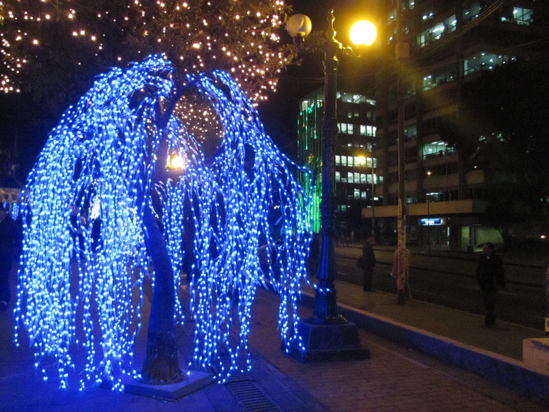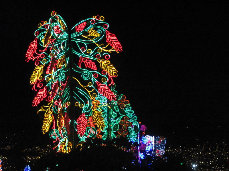 Zum Glück verändert sich unser Bild des ausgestorbenen Medellíns noch einmal, als wir uns den Fluss ansehen uns das dort über Weihnachten angebrachte Lichtermeer, das Ilumbrado Navideño. Denn jedes Jahr leuchtet die Großstadt in einer anderen thematischen fantasievollen Weihnachtsbeleuchtung. Man sagt für diese Zeit lasse der Glanz die Armut und Probleme vergessen. Im Jahre 2008 wurde ein vorläufiger Rekord aufgestellt, als sagenhafte 14,5 Millionen Glühbirnen erstrahlten.