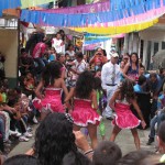 Zusammen mit Luís und Alex, zwei Freunden unserer Gastgeber, besuchen wir den Stadtbezirk Santa Rita. Bis vor einem Jahr soll es hier sehr gewalttätig zugegangen sein. Luís war noch nie hier im “hueco del miedo, hueco de los gritos” – “dem Loch der Angst, dem Loch der Schreie”, wie es die Töchter Luís nennen. Zum ersten Mal organisiert hier Alex eine Weihnachtsshow für die Kinder. Natürlich wird wieder sexy getanzt, diesmal macht auch ein Junge mit. Jüngere Kinder singen Weihnachtslieder in der engen Gasse. Immer mehr Kinder strömen mit ihren jungen Eltern herbei. Coole Jugendliche schauen von den Balkonen herab.