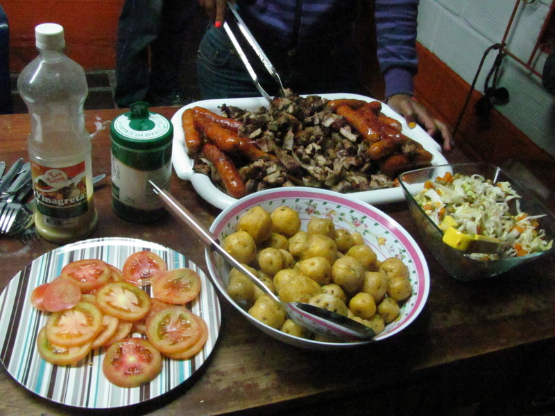 Wir fahren zu Luís nach Hause und werden zu einem asado, einem Grillabend, eingeladen. Freunde kommen vorbei, auch Manuel und Martha und unsere anderen Mitbewohner. Viel Fleisch wird von den Töchtern Luís gegrillt, dazu gibt es Kartoffeln und Salat. Stolz zeigen Luís und Alex alle ihre Errungenschaften wie Zelt, Schlafsack oder Kocher, denn sie werden ab Anfang Januar auf Fahrradreise gehen. Sie fliegen nach Patagonien und wollen bis nach Peru hinauf radeln. Vielleicht kreuzen sich unsere Wege. Noch lange wird über ihre bevorstehende Reise und ihr Unvermögen bezüglich des Kochens und Waschens diskutiert, insbesondere von ihren schelmisch lachenden Ehefrauen.
